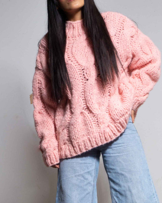 MUJU CABLE KNIT ALPACA WOOL SWEATER - PINK