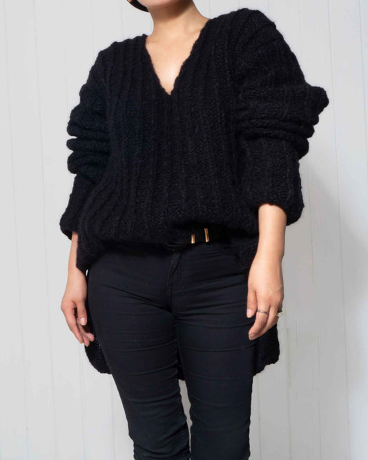 V NECK ALPACA SWEATER - BLACK