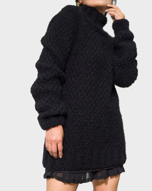 ALPACA CHUNKY KNIT SWEATER - BLACK