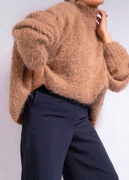 ALPACA CHUNKY KNIT SWEATER - BROWN
