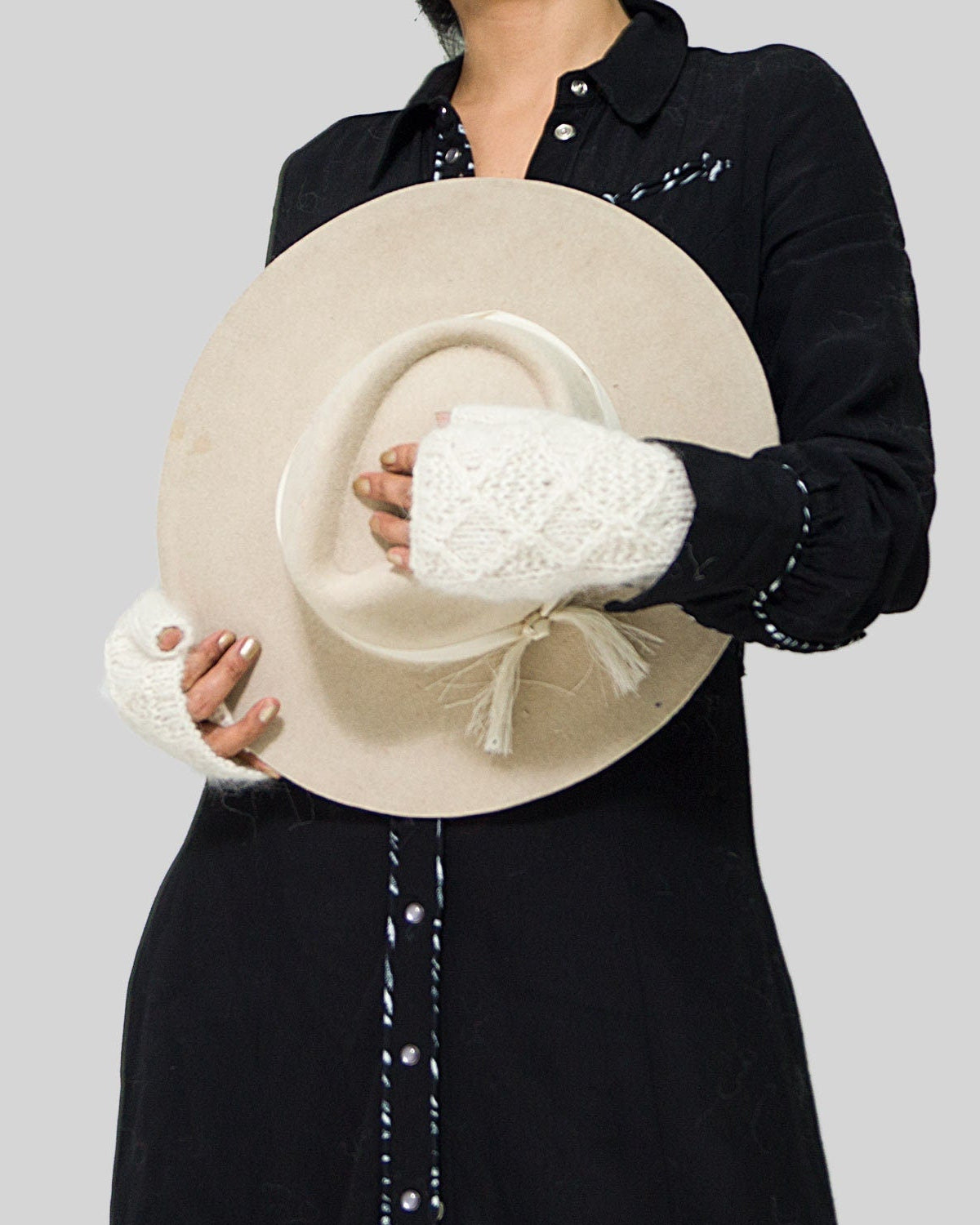 Cable Knit Alpaca Fingerless Gloves | Handmade Wool Mittens