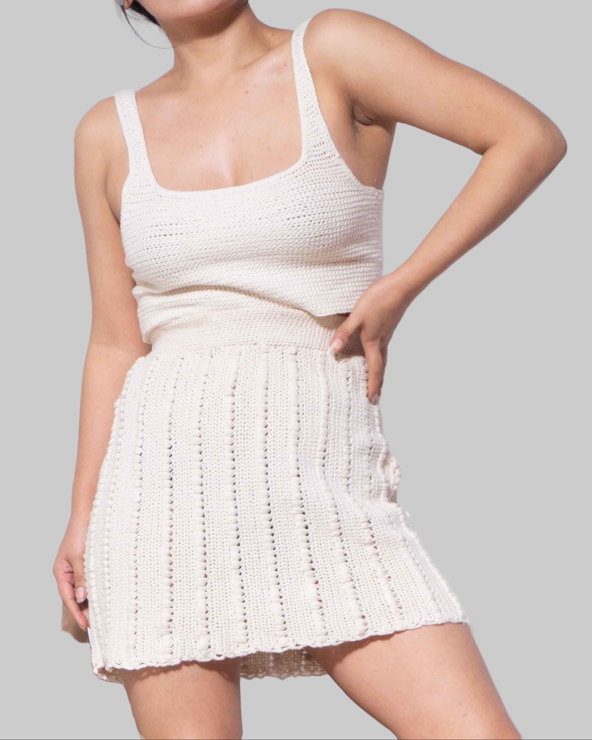 Crochet Organic Cotton Crop Top – Button Strap Sleeveless Knit Top
