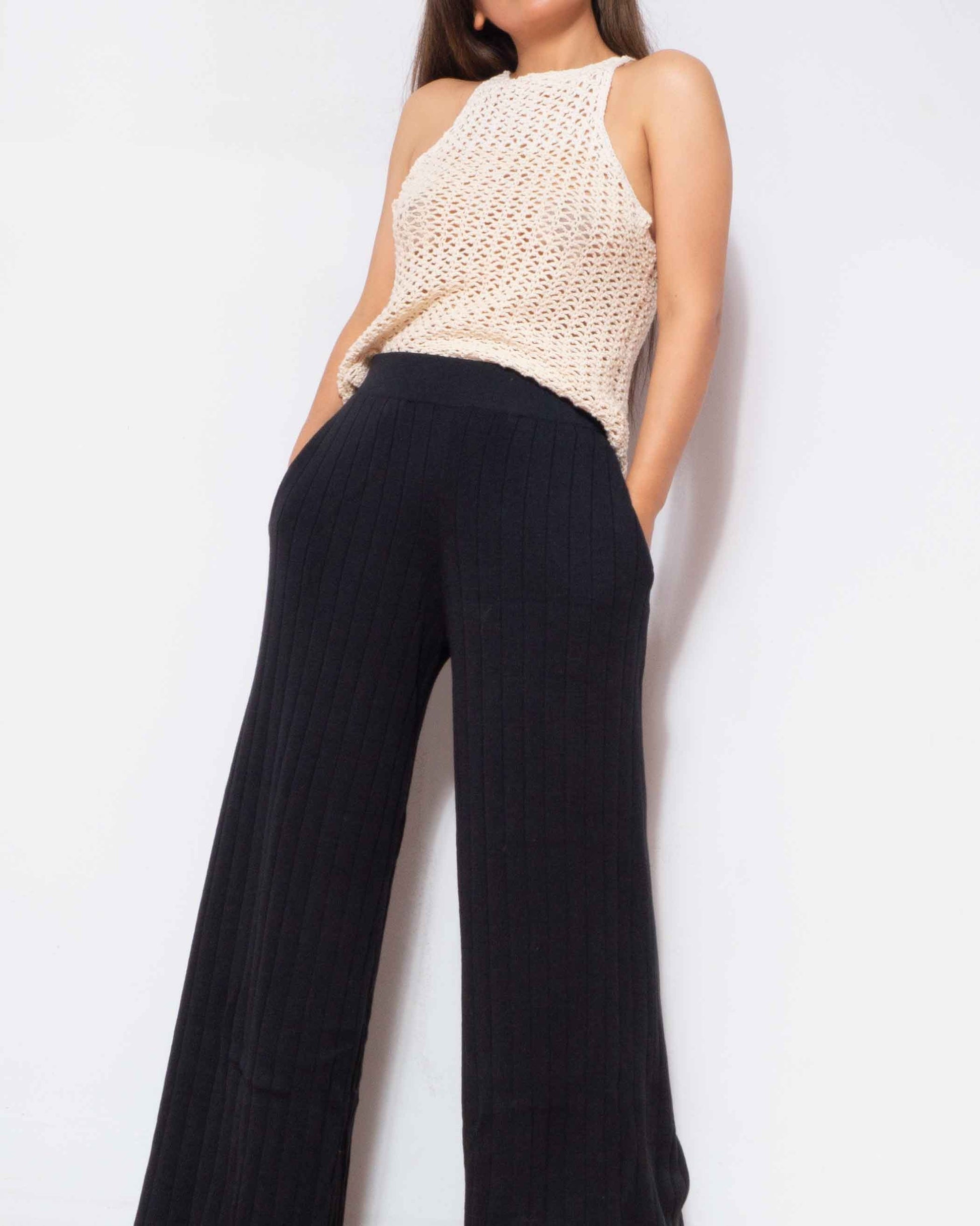 Organic Cotton Knit Palazzo Pants, Wide Leg Culottes